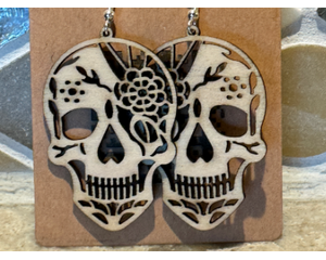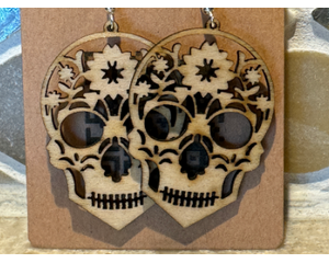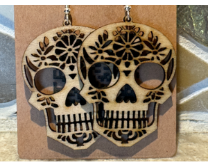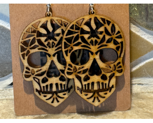 Custom laser cut wood sugar skull earrings